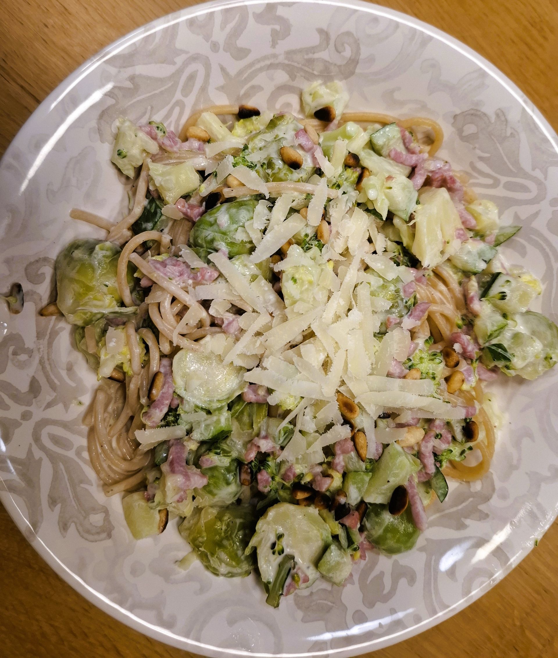 Spaghetti met groene groenten en roomsaus